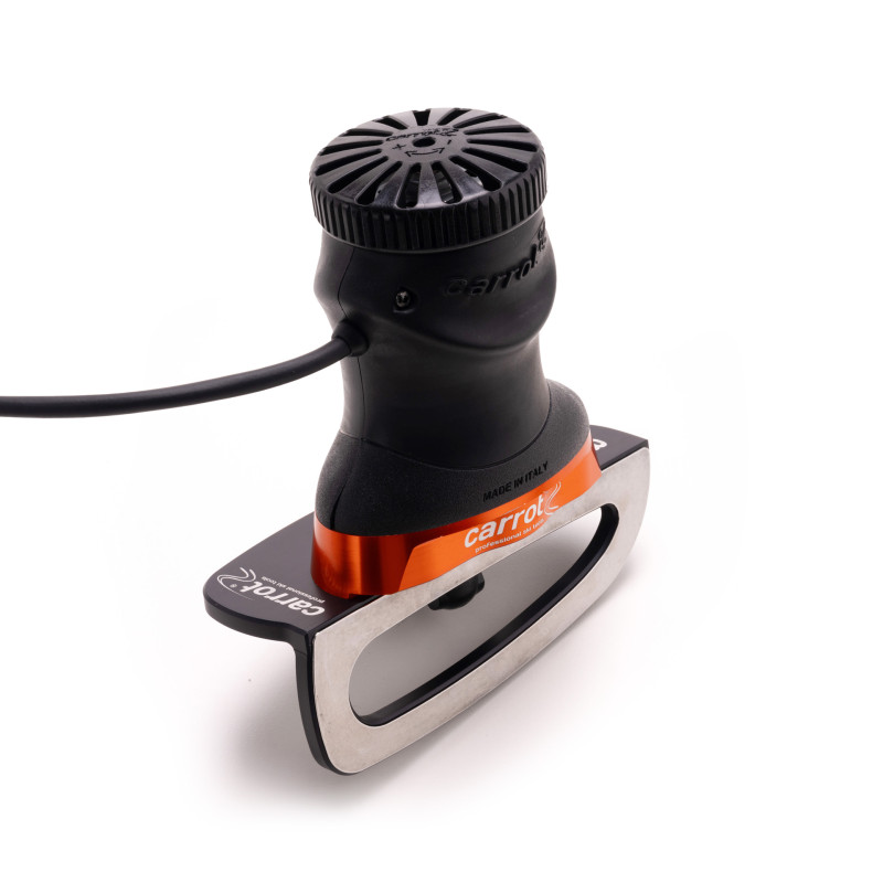 CARROT elektrická kamenná ruční bruska pro tuning lyží a snowboardů. Profesionální stroj pro precizní tuning hran. Dodávaný v cestovním boxu.
